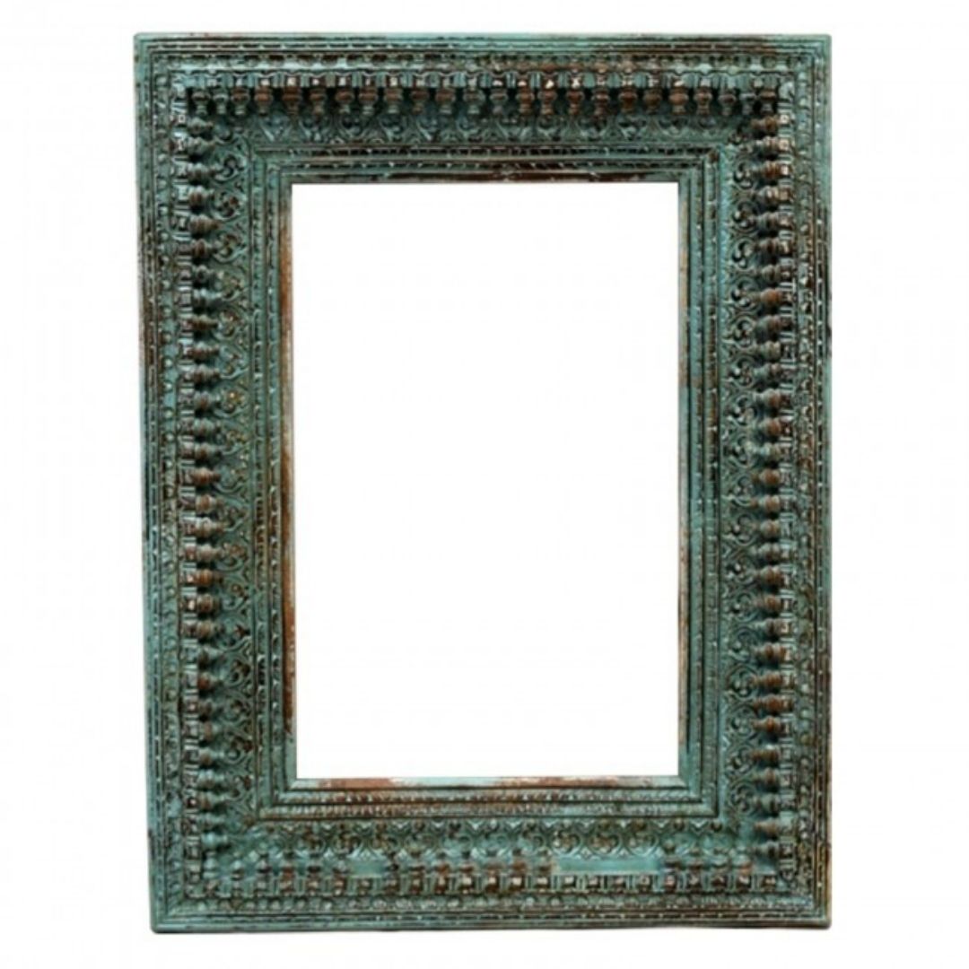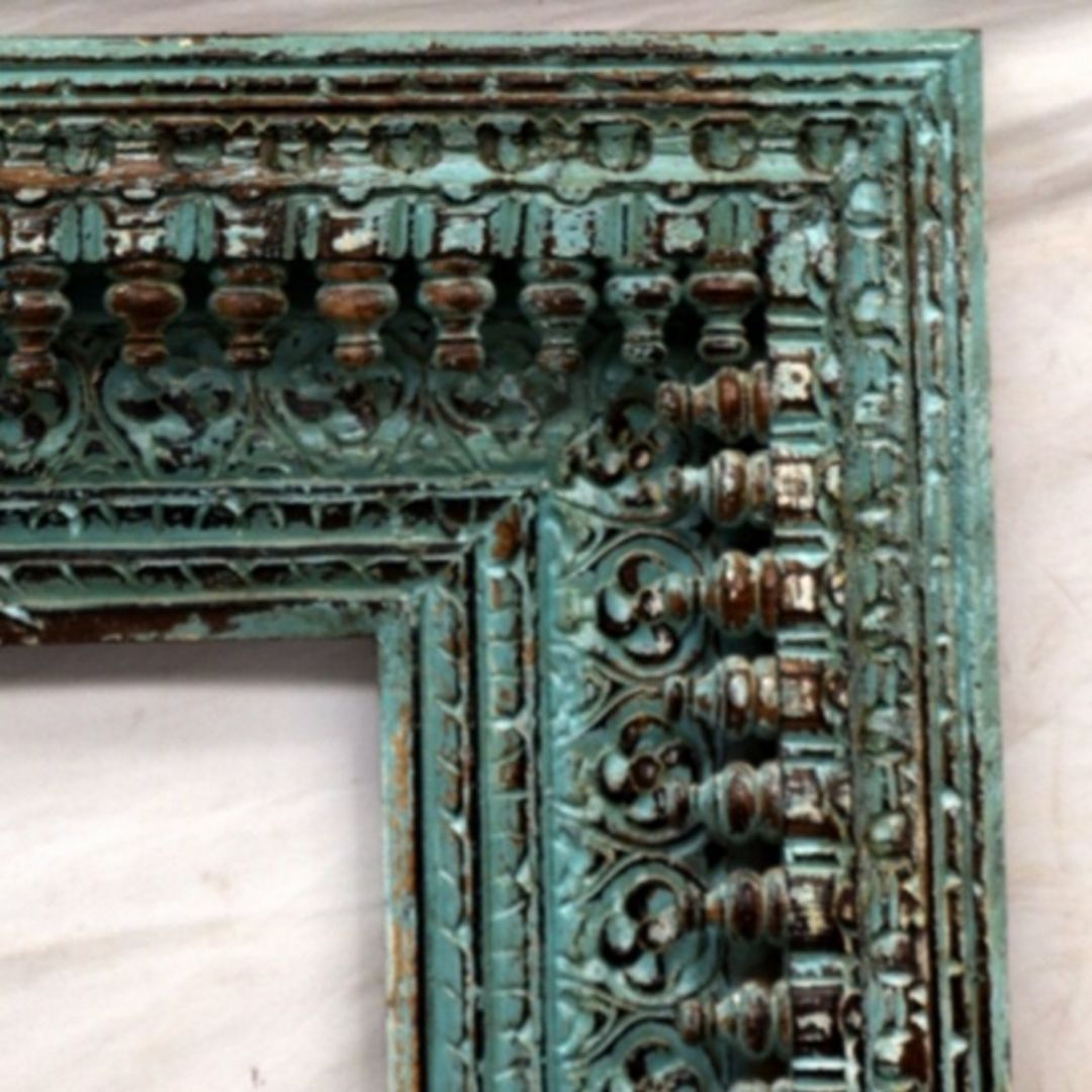Hand Carved Indian Mehran Mirror Arched Globe Wooden Wall Decor Blue