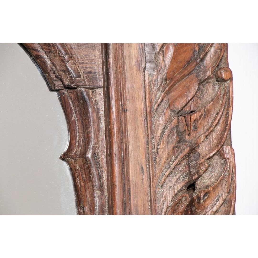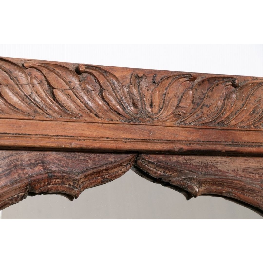 Hand Carved Indian Mehran Mirror Arched Globe Wooden Wall Decor Brown