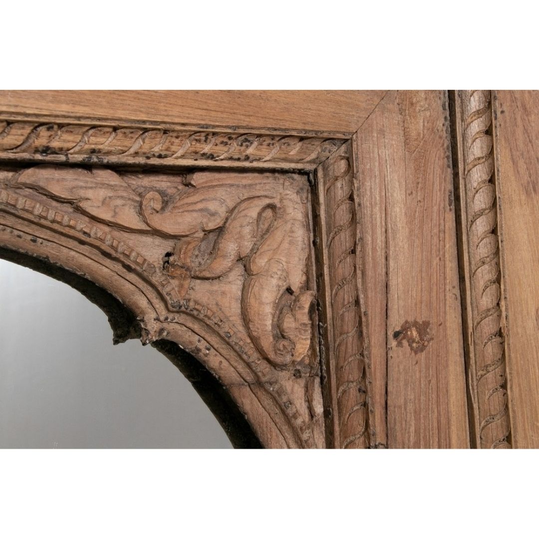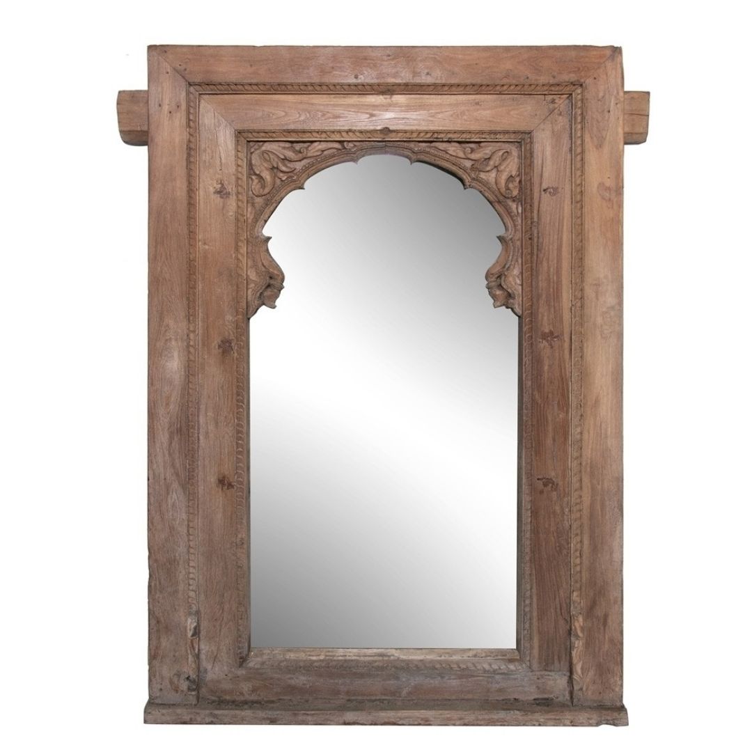 Hand Carved Indian Mehran Mirror Arched Globe Wooden Wall Decor Natural