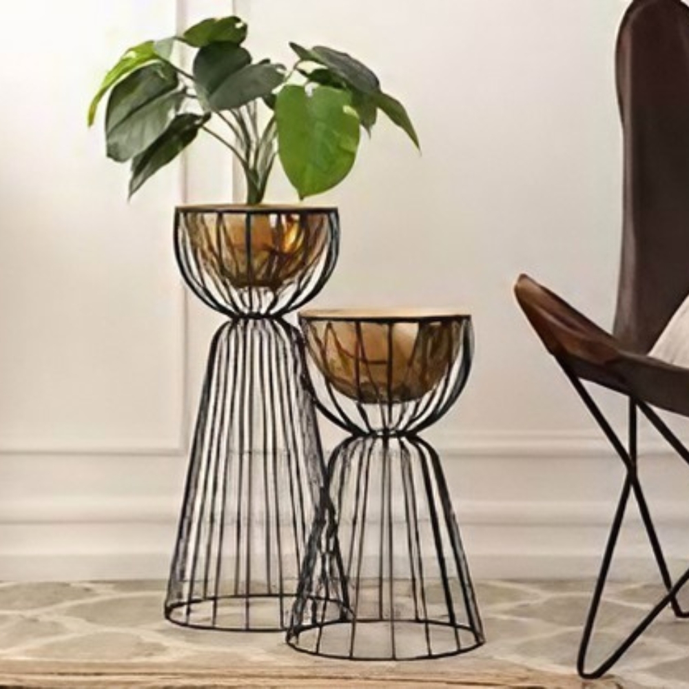 Stunning Set of 2 Gold Twin Floor Planter Stand